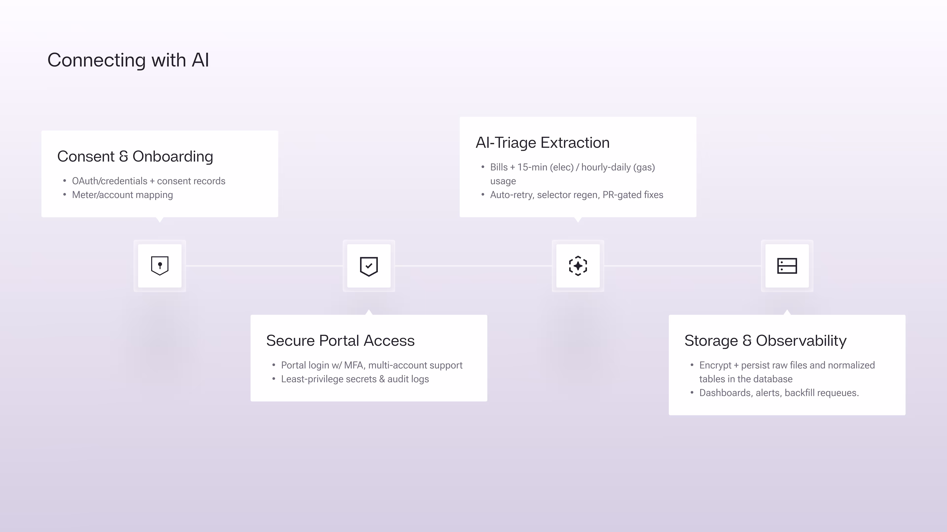 - Automated Data Capture: Instead of relying on customers to upload files, we can log into utility portals, download bills, and pull smart meter data automatically.